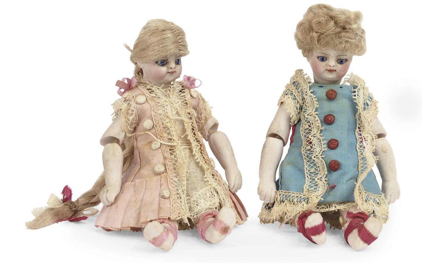 TWO FRENCH ALL-BISQUE DOLL’S HOUSE DOLLS