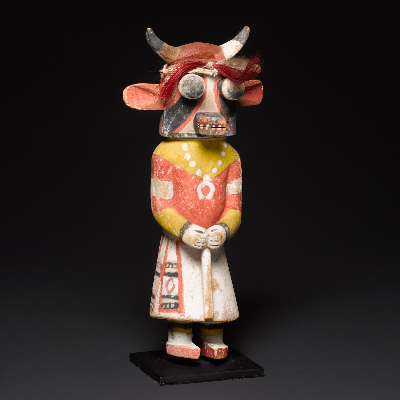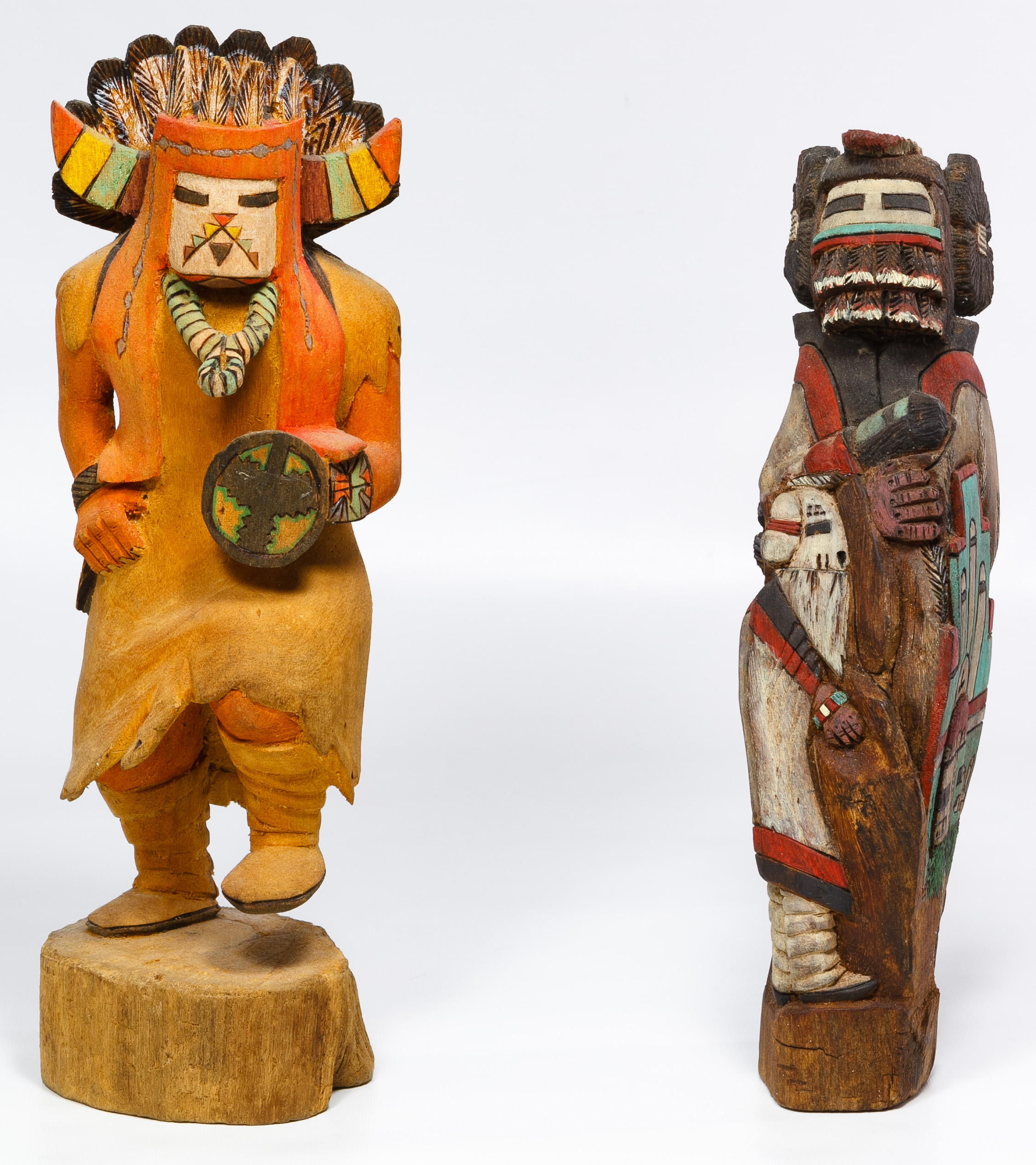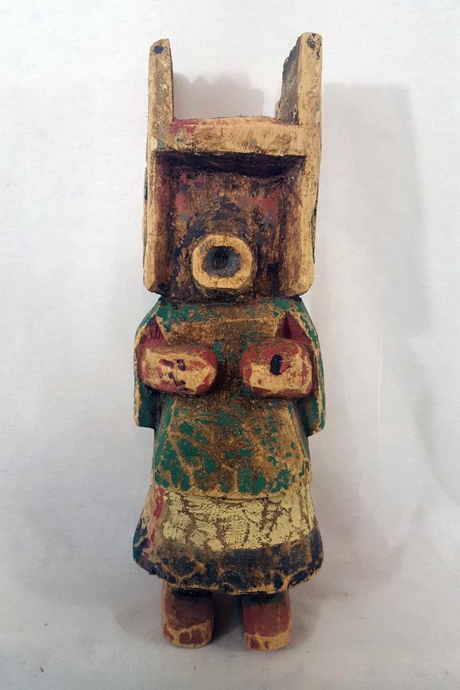 Kachina dolls are figures carved, typically from cottonwood root, by Hopi people to instruct young girls and new brides about katsinas or katsinam, the immortal beings that bring rain, control other aspects of the natural world and society, and act as messengers between humans and the spirit world.