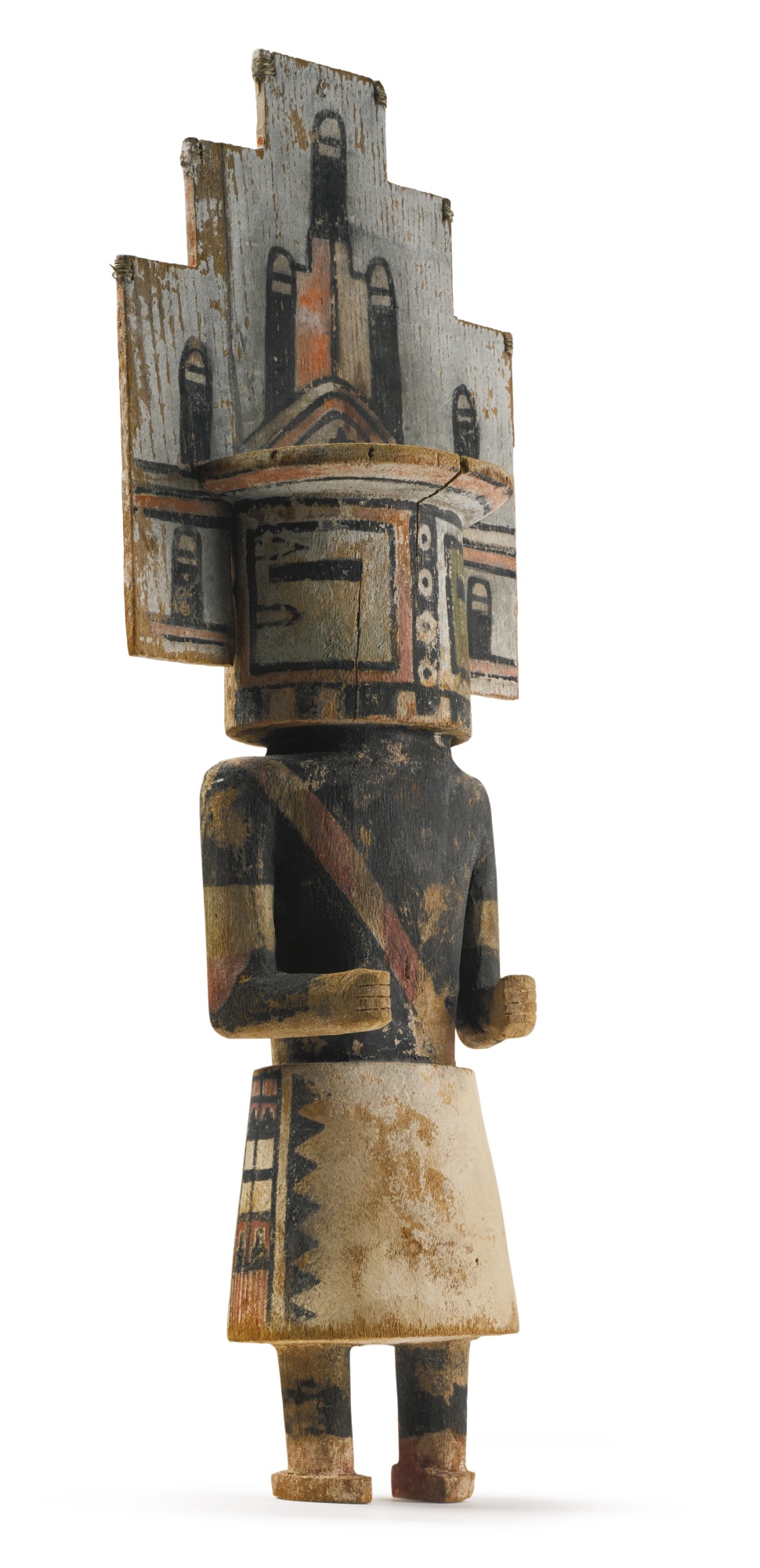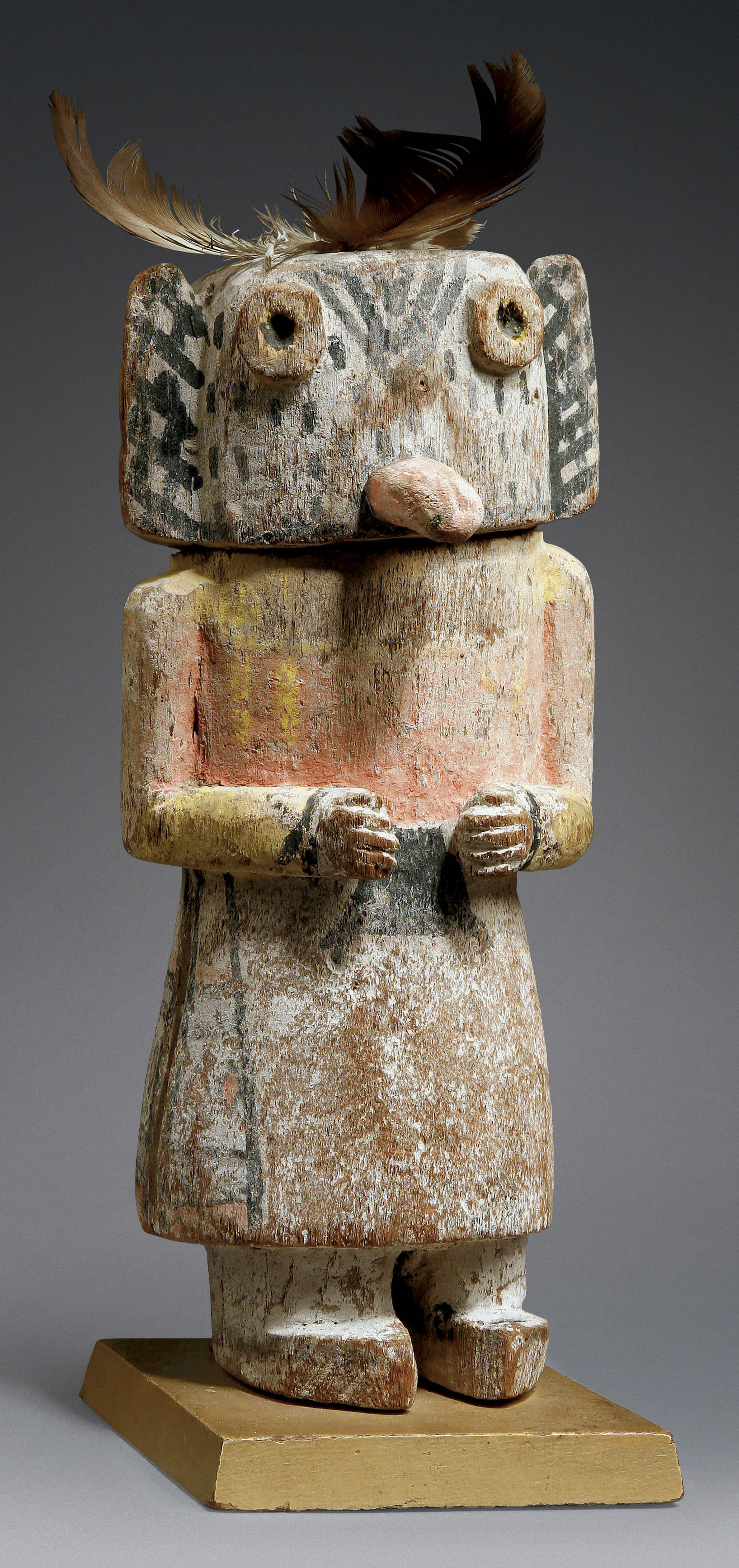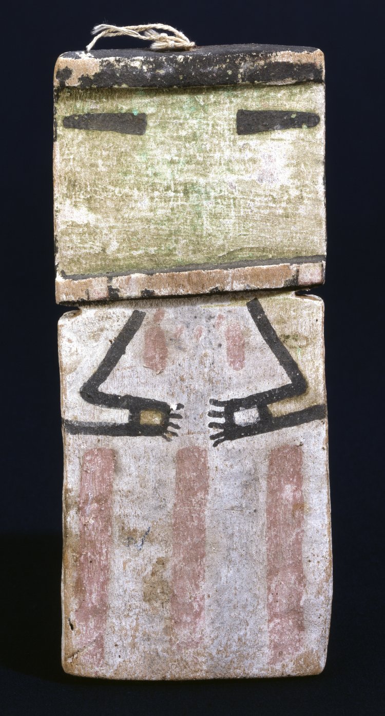 Except for major ceremonial figures, most katsina figures originated in the late 19th century. The oldest known surviving figure dates back from the 18th century—it was a flat object with an almost indistinguishable shape that suggested a head and contained minimal body paint. Kachina dolls are generally separated into four stylistic periods: the Early Traditional, Late Traditional, Early Action, and Late Action periods.